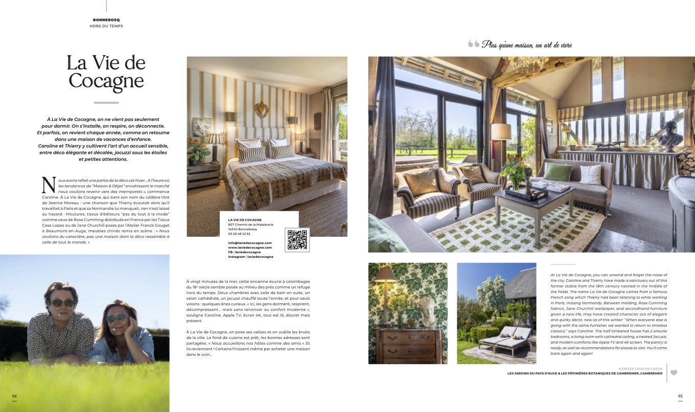 Discover through the photo gallery La Vie de Cocagne all the charms of the Pays d’Auge and Normandy . Our charming cottage offers all the comforts of a luxury both discreet and refined just steps from Deauville. Renting our guest house will immerse you in a haven of peace. It is the ideal place to recharge time for a weekend or an extended stay in Normandy. More pics on our instagram page @laviedecocagne