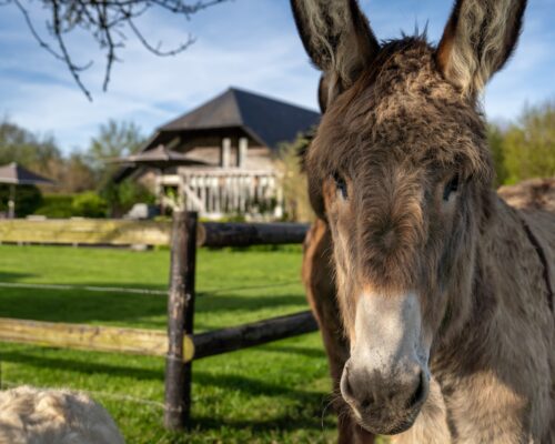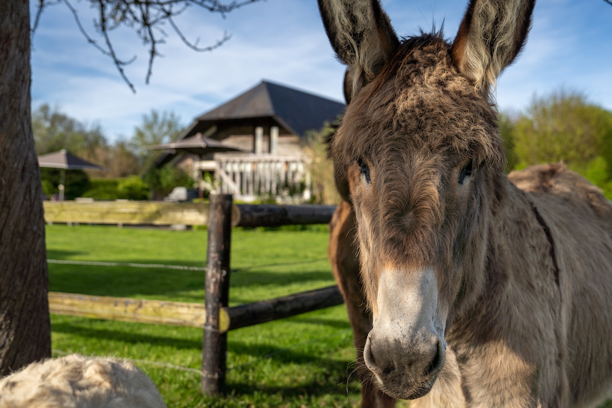 Through the window you can gaze upon the meadow, home to our donkeys Chocolat and Kitty.
