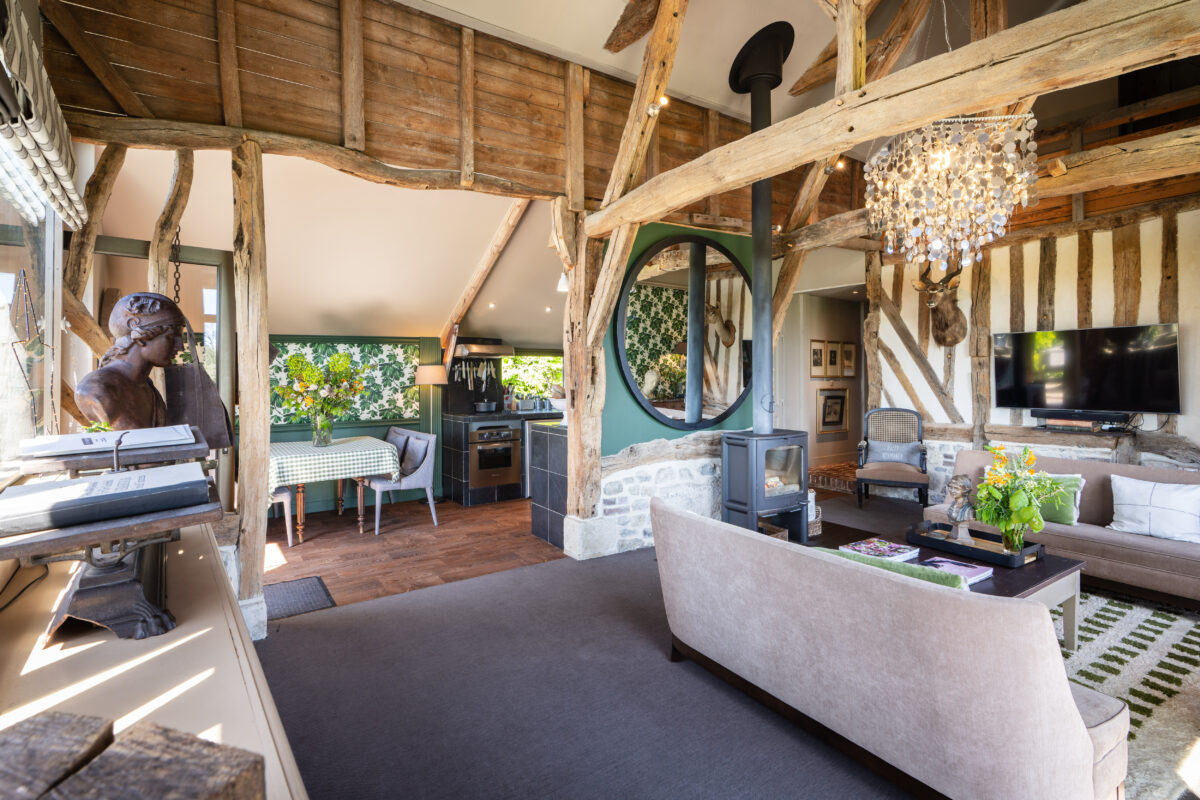 Situated in Normandy in the heart of the Pays d’Auge, not far from Deauville and only 10 minutes from the A13 motorway, our gîte, La Vie de Cocagne, is an 18th century timber-framed stable that has been totally renovated in keeping with the local architecture and retaining original features. Opening onto the beautiful surrounding countryside adds to its enormous charm.